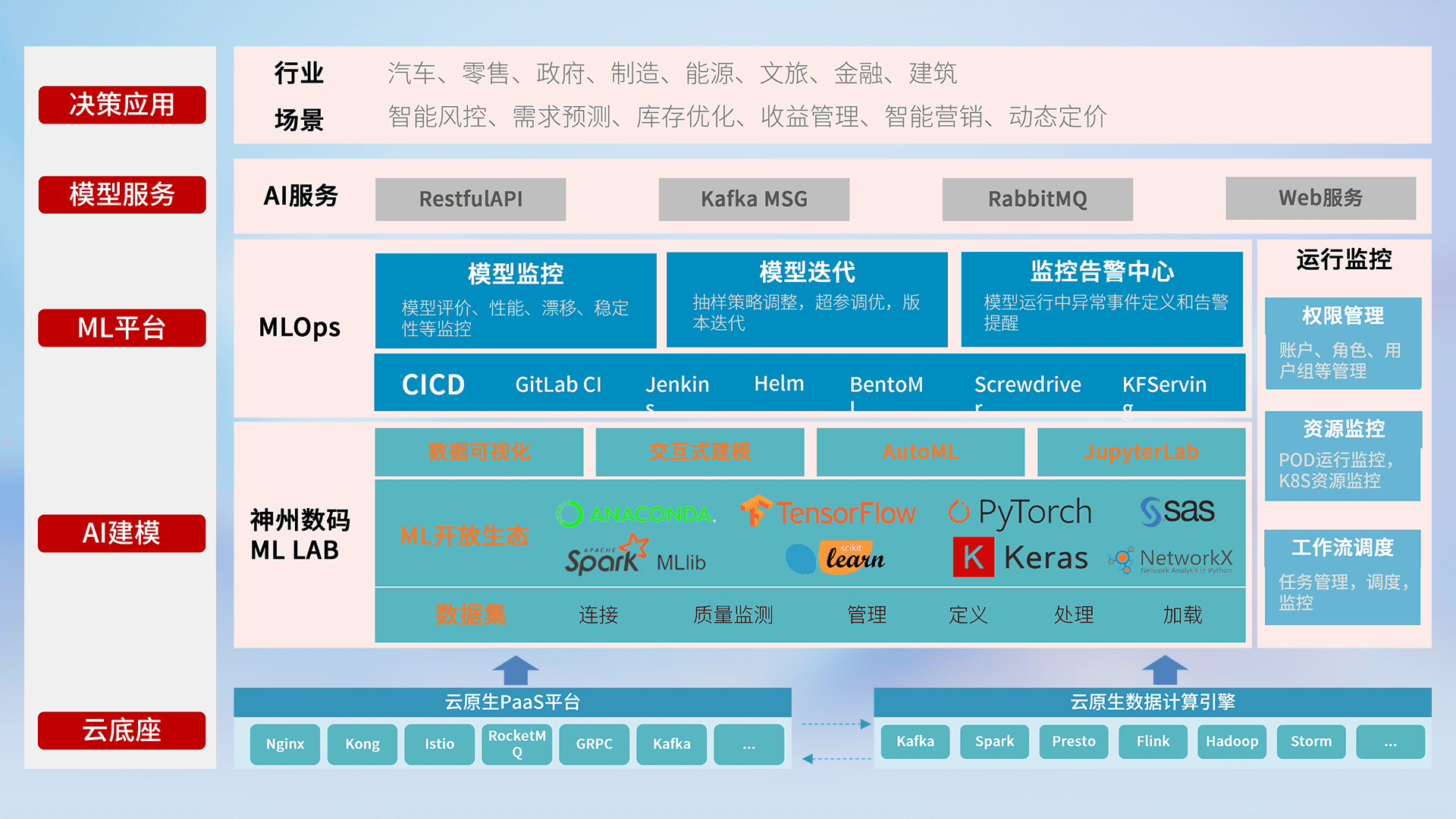 数据+模型双引擎驱动,,,,面向智能服务场景,,快速灵活利用AI技术,,支持业务决策,,,助力企业智能化转型破局。。